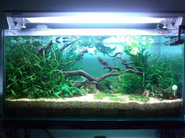 นั่งๆนอนๆมานาน ผลัดไปเรื่อยพอไ้ด้ต้นไม้ก็บอกไม่มีตู้ พอได้ตู้ได้อุปกรณ์ครบ ก็มีข้ออ้างว่างานเยอะ (ขี้เกียจนั่นเอง) เอาต้นไม้ใส่ตู้รันกรองไปเรื่อยๆ ชิวชิว ้hahaha จนมีคนค่อนขอดมาว่า "ดีแต่ไปเที่ยวเล่นนั่นแหละตู้ตัวเองจัดเสร็จยัง" ฮึ๊ย เรามันคนถือฤกษ์ถือยามหรอกเฟร้ย เลยรอก่อน เมื่อวันอาทิตย์เลยจัดออกมาซะ ตั้งกะ 4 โมง ยันเที่ยงคืนกว่า (ดีที่ปูกรวดรองพื้นไว้ก่อนแล้วนะเนี่ย 5555  n032) ผลลัพธ์ดังต่อไปนี้ครับเชิญติกันเลยครับ