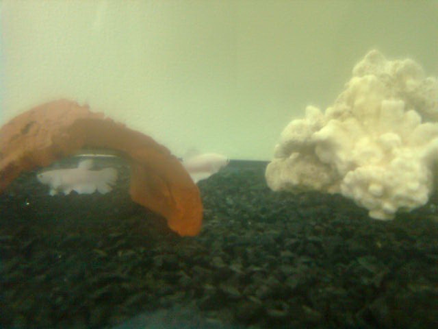 รันน้ำได้สัก 2 วัน เลยเอาเจ้าปลากัดขาวที่บ้านมาลงดู ที่จริงน้ำใสนะครับ แต่กล้องมือถือถ่ายออกมาขุ่นไงไม่รู้ asspain