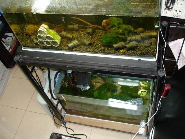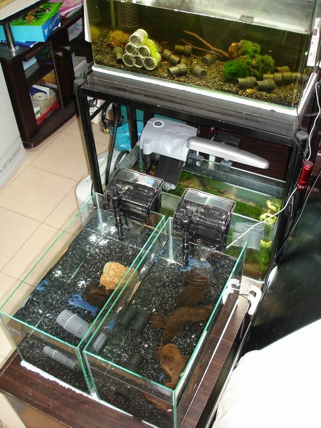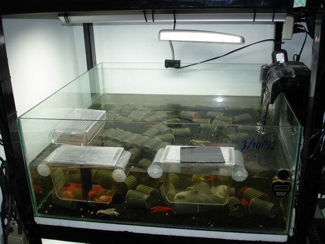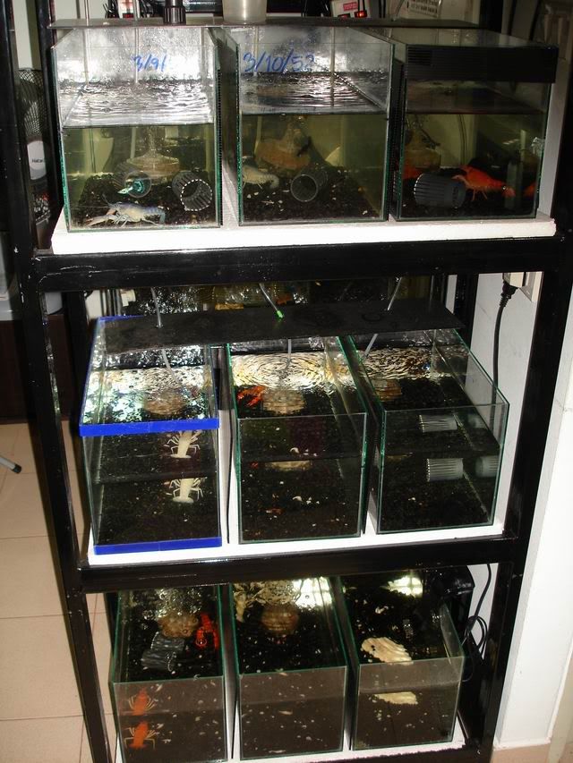 ส่วนตู้น้อย ๆ นี้เซ็ตไว้สำหรับให้กุ้งตัวเล็กลอกคราบ หรือกุ้งบางตัวอยู่ชั่วคราวค่ะ