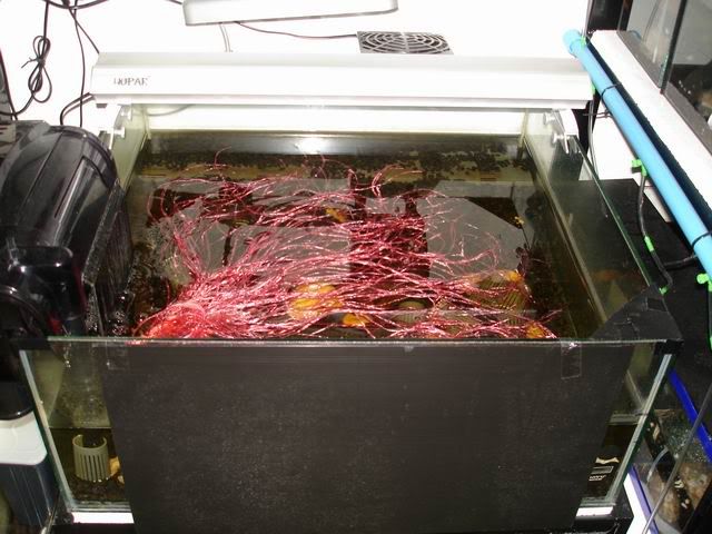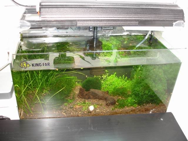 สีชมพูเป็นเชือกฟางค่ะ  เอาไว้ให้ลูกกุ้งเค้ากระโดดเกาะได้ค่ะ  กะว่าจะเปลี่ยนเป็นสาหร่ายหางกระรอก