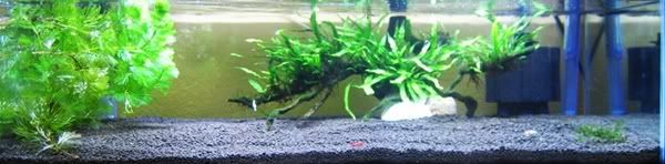 กรองใต้กรวดธรรมดาๆต่อกับกรองเเขวน+กรองฟองน้ำอีกตัว ทับด้วยพัมมิส5กิโลทับด้วยดิน azoo 2ถุง