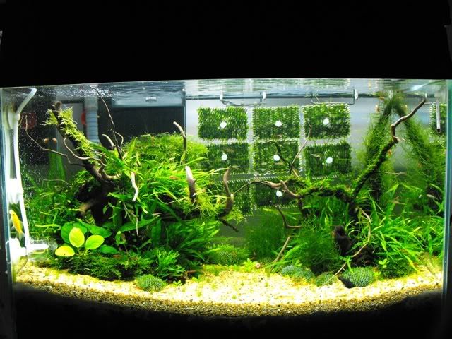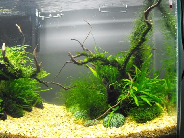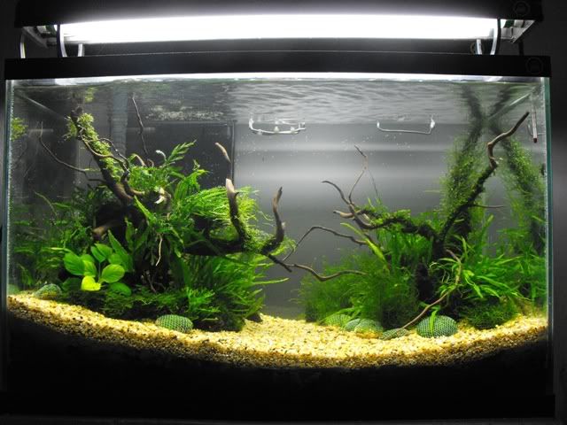 อดีตมันเคยเป็นตู้มาลาวีอ่ะคับ ก็เลยเน้นจัดเป็นกองหินซอกหิน พอดีกัดกันตายหมด + กับมีขอนไม้เลยจับๆใส่ๆไป ก็เลยออกมาเป็นอย่างที่เห็นด้วยประการหละฉะนี้
