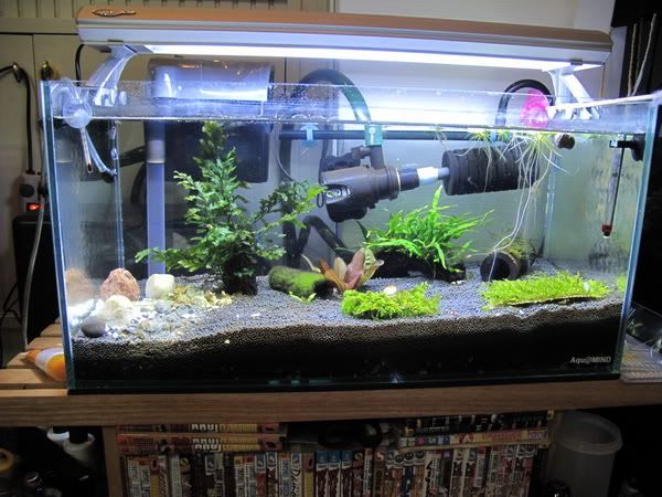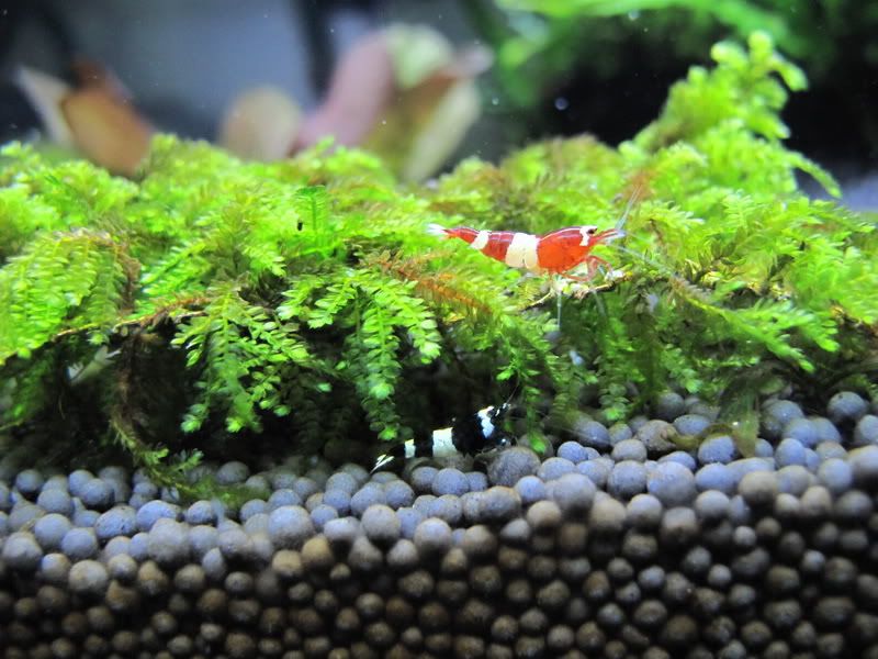 จริงๆตู้นี้เลี้ยงแบบไม่มีชิลเล่อครับ เลี้ยงในห้องนอน กลับมาเปิดแอร์ทุกวัน แต่พอดีมีอาทิตนึงต้องไปต่างจังหวัดหลายวัน เลยต้องโดนชิลเล่อจนได้ มีกรองเท่าที่เห็นครับตู้นี้ ชิลเล่อยังใช้ปั้มน้ำส่งเลยครับ รันน้ำอยู่ซักสองชั้วโมงครับ ก็ลงกุ้งเลย ปัจจุบันตู้นี้ยังไม่มี กุ้งตายครับ(แต่อีกตู้ตายนะ cryingrun)ตั้งมาประมาณเดือนนึงแล้วครับ ปัจจุบันมีกุ้งท้อง ออกลูก และัลูกกุ้งก็รอดครับ เปลี่ยนน้ำ บ่อยมากครับ ครั้งละประมาณ 5-10% รู้ว่าเรดบีไม่นิยมเปลี่ยนน้ำครับ แต่พอดีติดนิสัยมาจากเลี้ยงปลาตก่อน ถ้าตู้ใหญ่คงทำ over flowไปแล้วหล่ะครับ แต่ว่าเนื่องด้วยผมอัดอาหารกระจายครับ เลยเปลี่ยนน้ำบ่อย ระบบกรองจะได้ไม่ต้องทำงานหนักมาก ตอนนี้มีกุ้งอยู่หกตัวเองครับ มีตัวผู้อยู่ตัวเดียว ต้นไม้+ของในตู้หลายๆอย่างไม่จำเป็นต่อการเลี้ยงครับ แต่ว่าชอบ เลยต้องโดน [on_003]