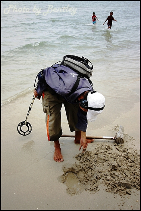 ขับไปทางตัวเมืองเกาะช้างก่อนเข้าที่พัก เลยแวะ หาดทรายขาว เลยเจอตาลุง หาเหล็ก ตามชายหาด