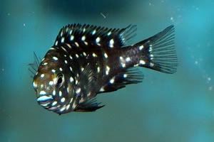 หน้าตาคล้ายปลาหมอมาลาวีทั่วไปอ่ะ แต่ตอนเล็กๆ ตัวดำ ลายจุดขาว ยิ่งโตยิ่งดุ และถ้าโตเต็มที่จะตัวใหญ่มากๆ และสีจะจางลง (ลองไปดูที่ร้านพี่กบดิรู้สึกจะมีอยู่ตัวนึงนิ้วครึ่งได้มั๊ง)