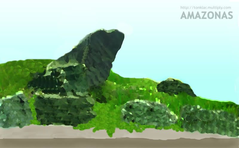 จากรูป ใช้ Amazonia II Powder และ ทรายขาวลงหน้าตู้ครับ หินเล็กๆข้างหน้าจะเอามอสสมาพัน