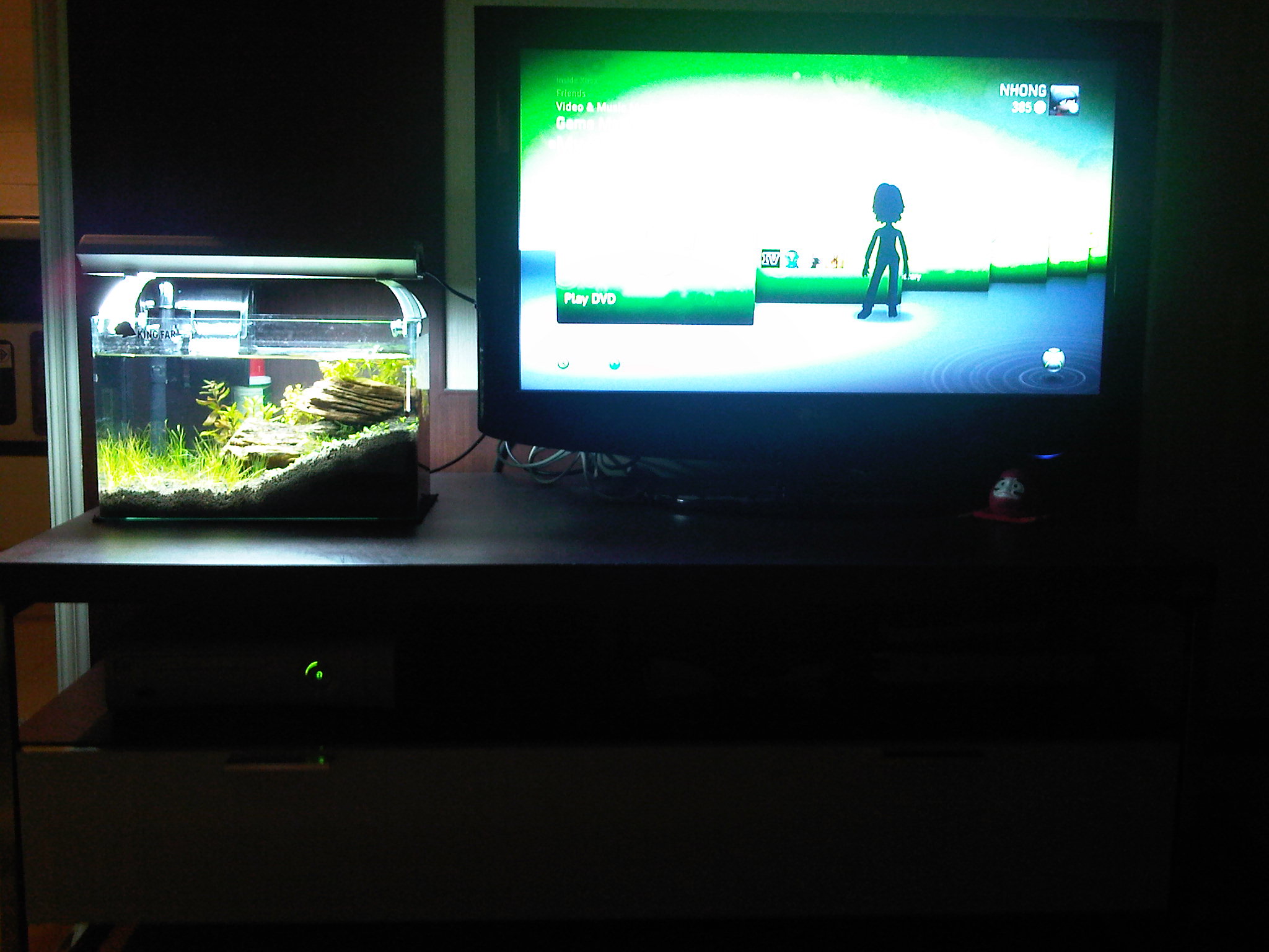 ตู้แรกในชีวิตครับ งบน้อยT^T 14 นิ้ว 1 กรองเล็ก ไฟ คาร์บอนน้ำ อุณภูมิน้ำประมาณ 24-26 งับ^^ เปิดแอร์ตอนอยู่ในห้องงับ