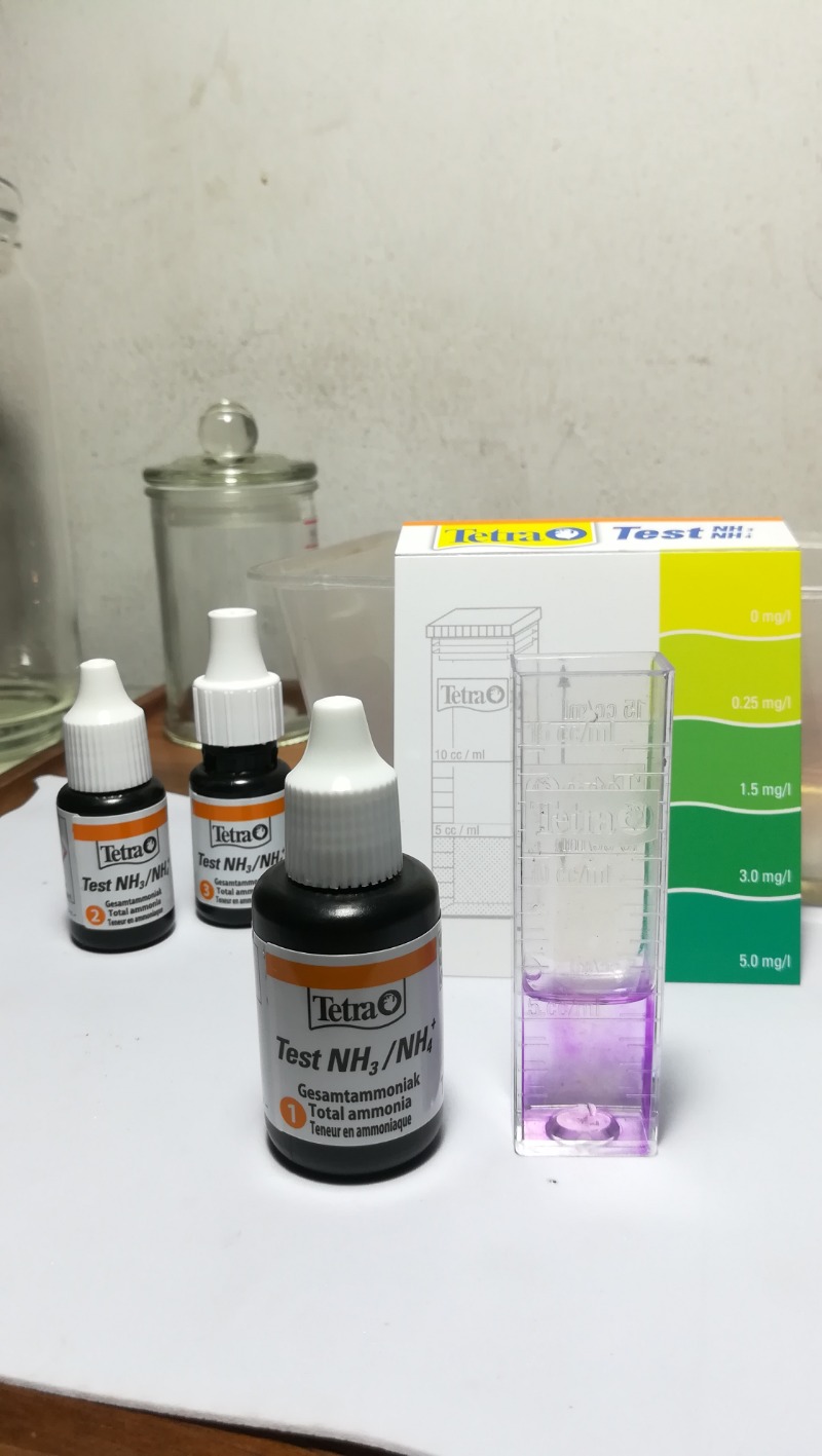 ผมใช้น้ำยาวัดแอมโมเนีย ยี่ห้อ Tetra หยอดน้ำยาขวดแรกผสมน้ำในตู้ได้สีม่วง สีม่วงนี่หมายถึงอะไรหรอครับ??