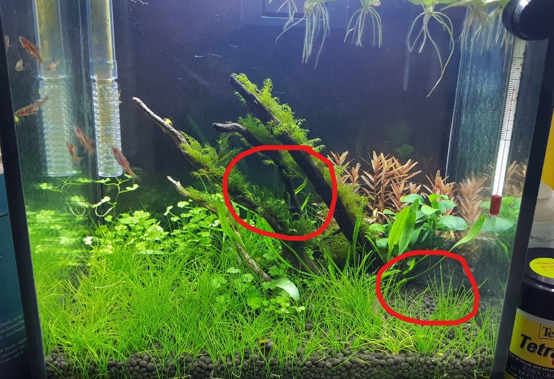อยากได้ต้นไม้เพิ่มเติมบริเวณด้านหลังกับด้านหน้าตรงที่วงไว้ครับ แต่นึกไม่ออกว่าจะเพิ่มต้นอะไรดีให้ดูเข้ากันและต้นไม่ใหญ่จนเกินไป(ตู้ขนาด8") รบกวนขอคำแนะนำหน่อยครับ