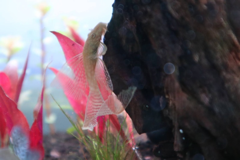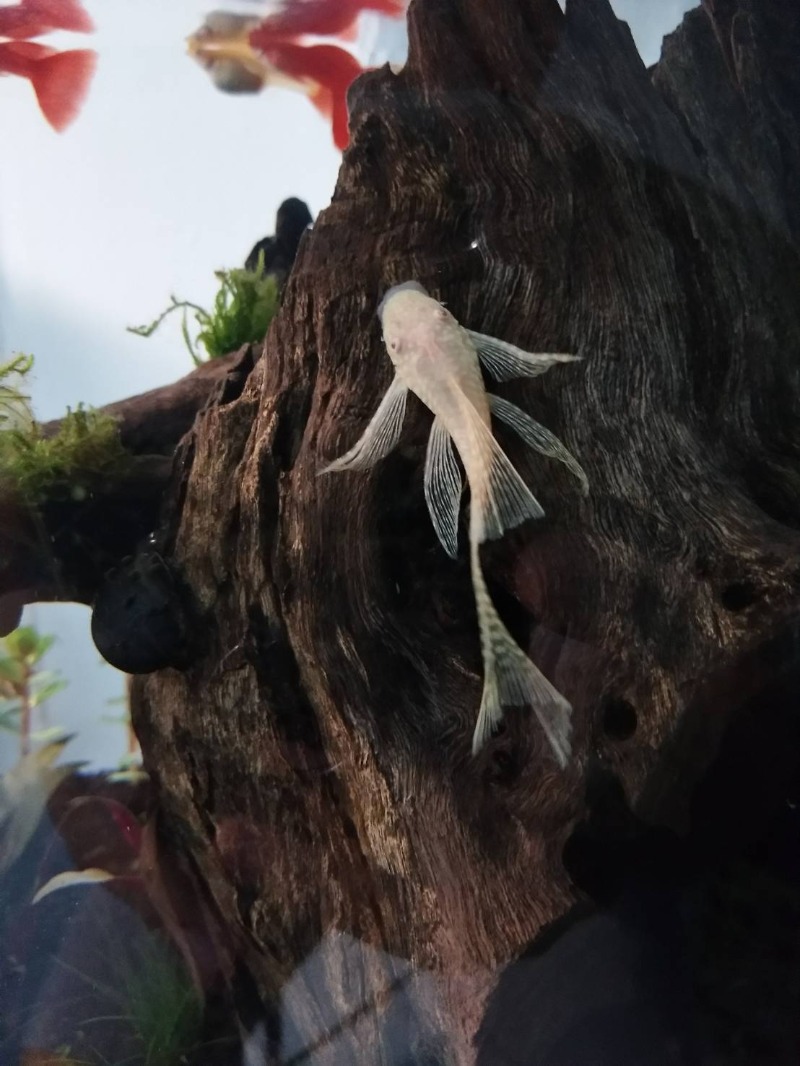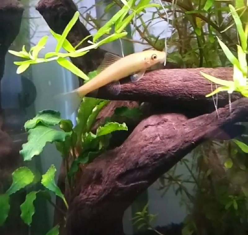อีกชนิดนึงคือปลาชัคเกอร์เผือก เปนสายตาแดง ครีบยาวๆหน่อย นิสัยขี้อาย หลบอยู่แต่ใต้ขอนดูไม่ค่อยชอบไฟ กินเศษอาหารก้นตู้(อาหารปลา) และกินตะไคร่ที่กระจกด้วย ชอบว่ายน้ำก้นตู้